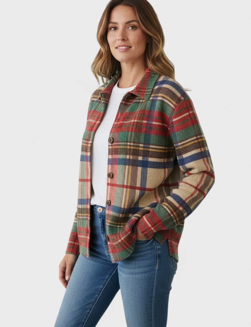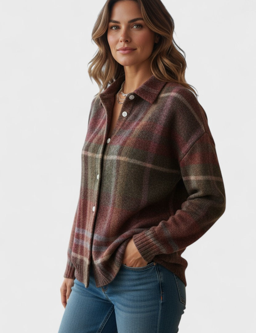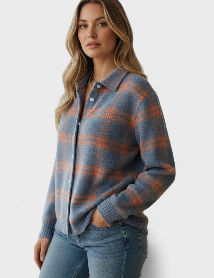 Blusa quadriculada em tons quentes de outono