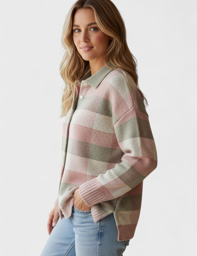 Blusa de malha quadriculada em tons suaves