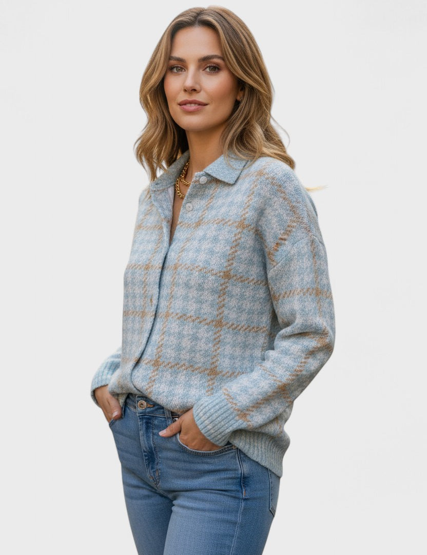 Blusa tricotada com padrão xadrez