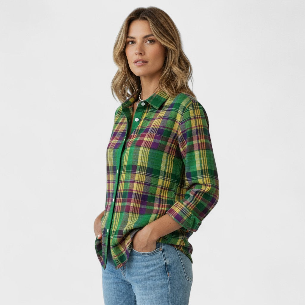 Blusa quadriculada em tons vibrantes de verde